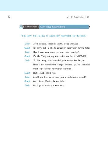 Colin Ok, Ms. Yang, I’ve cancelled your reservation for you.