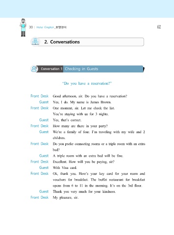 Front Desk Good afternoon, sir. Do you have a reservation?